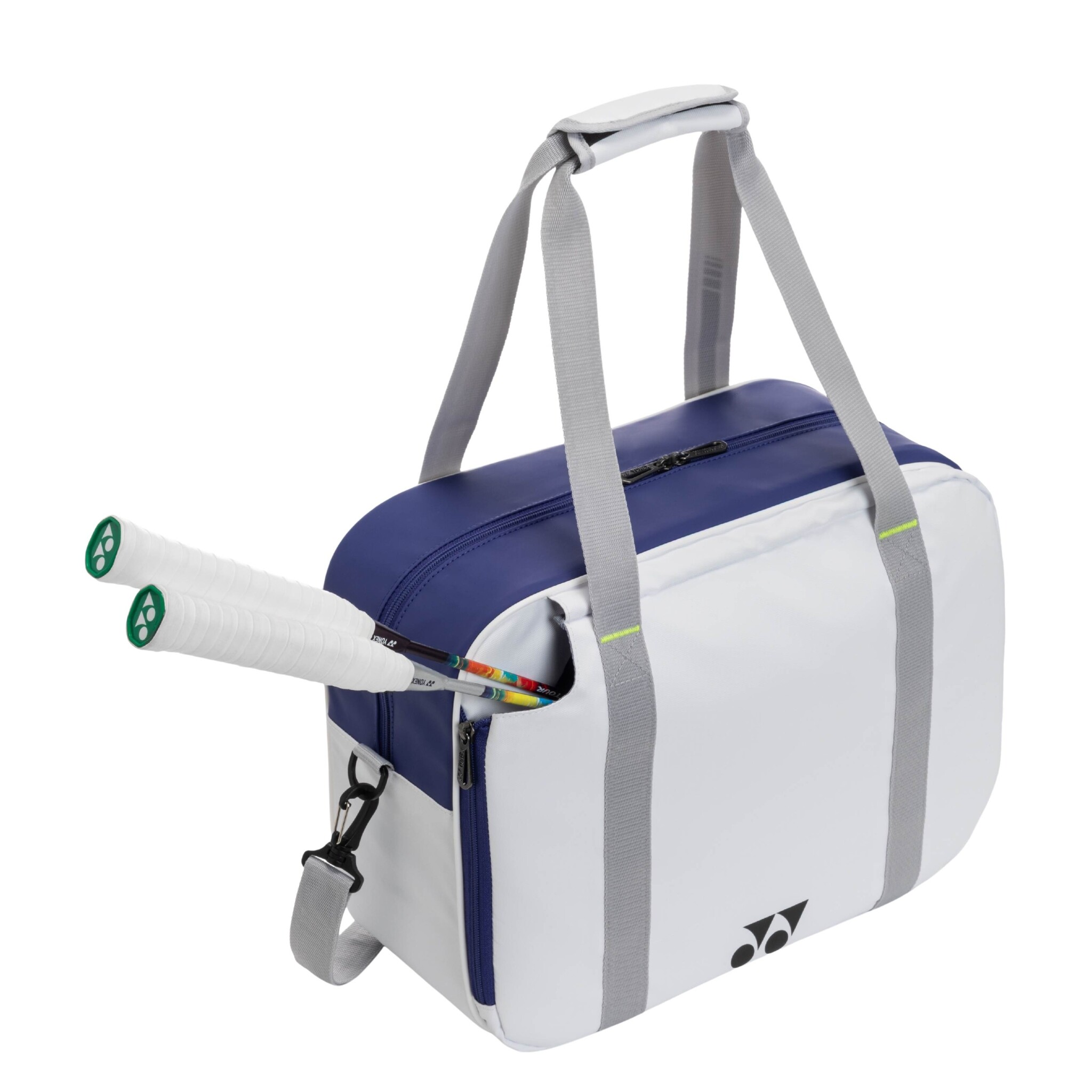• Yonex BA 52511SEX Club Compact Bag White/Blue – leichte Badmintontasche mit Seitenfach für Schläger.