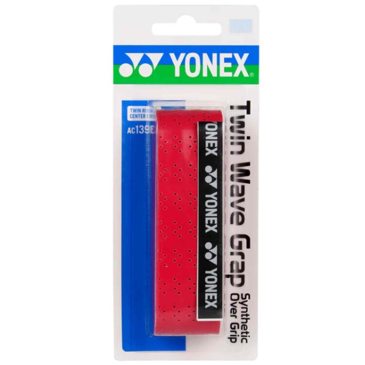 Buy your new Yonex AC139EX Twin Wave Grap Red now at KW FLEX. Yonex racquet grips are used at every level and always provide a good feeling and confidence. The Yonex Twin Wave Grap is known for its good absorbency and slightly sticky feel for extra grip on your racquet. It is basically an overgrip and thus needs to be rotated over the normal base grip for extra grip and extra moisture absorption.
