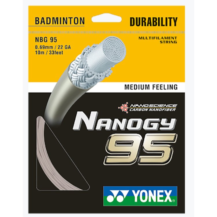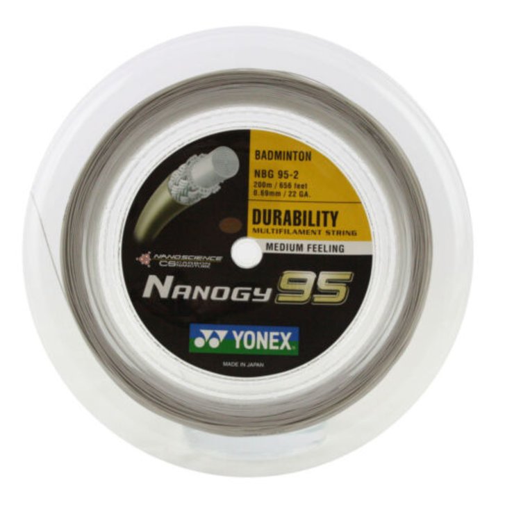 Order your Yonex Nanogy 95 Silver Gray 0,69 mm - 200 meter string in our online badminton shop or visit our KW FLEX badminton store in Rijen (Breda, Tilburg, Den Bosch region)! Ordered today before noon, will be shipped today. Free shipping from €100,- in the Netherlands and Belgium and €150,- in Germany. Check here which shipping costs we use to other countries!