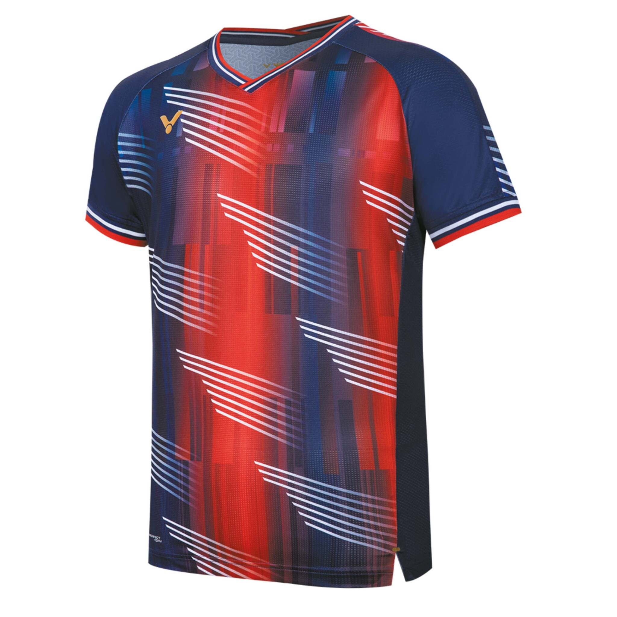 Wil jij presteren in stijl én in de kleuren van het Franse team spelen? Dit unisex badmintonshirt van Victor combineert performance met een uniek design in de kleuren blauw, wit en rood – perfect voor training, wedstrijden of als supporter.